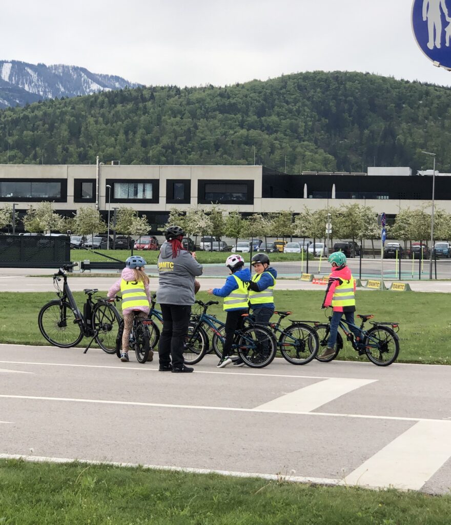 Die Schüler*innen der zweiten, dritten und vierten Klasse brachten ihre Fahrradhelme mit und konnten sich im Mobilitätspark Räder ausleihen, um einen Fahrradparcours und unterschiedliche Geschicklichkeits- und Sicherheitsübungen zu absolvieren.